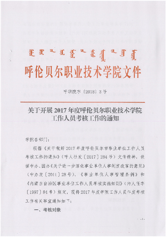 呼伦贝尔职业技术学院关于开展2017-2018年三好学生等评选的通知